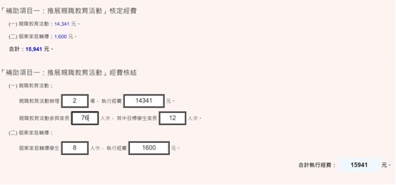 補助項目用於目標學生家長,並邀請社區家長參與。 |